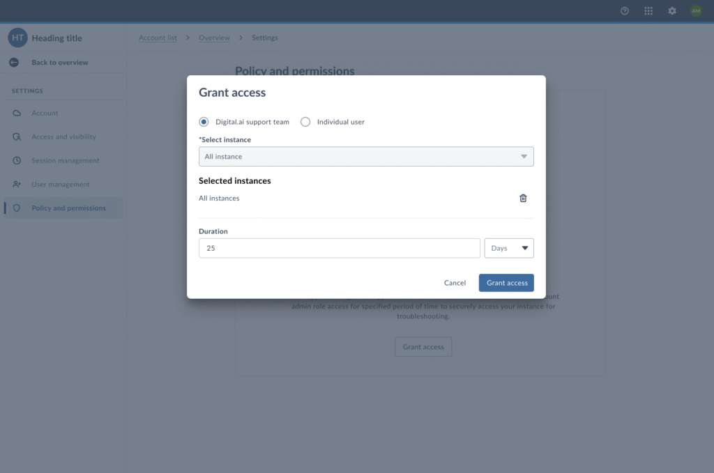 Support engineers often require temporary access to customer environments to debug and resolve issues—but granting this access was manual, inconsistent, and risk-prone. Our goal was to create a clear, permission-based flow where admin users can confidently provide and monitor support access.